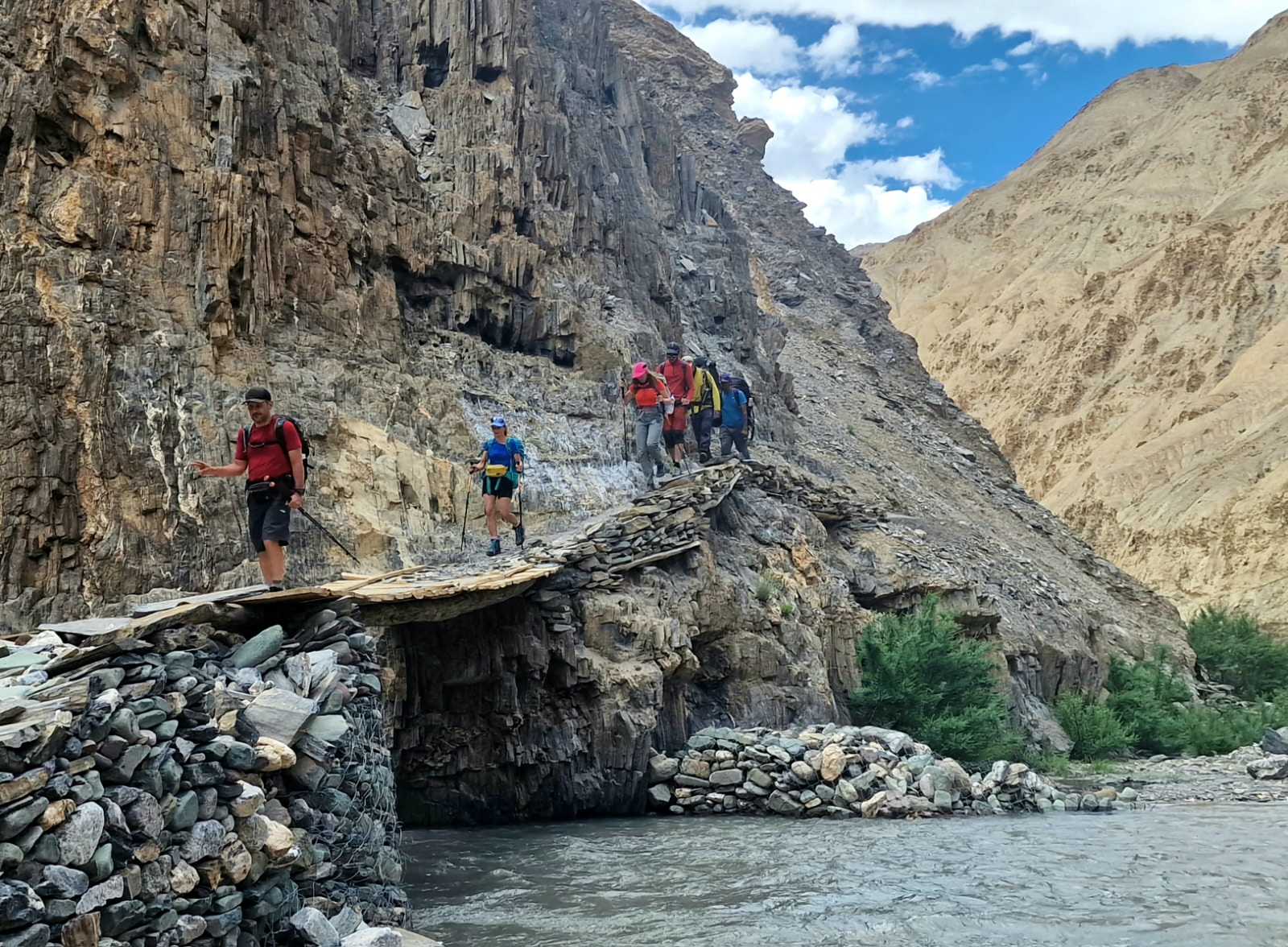 Po śniadaniu pakujemy wszystkie potrzebne rzeczy do jeepów, które zawiozą nas do Chilling. Czas przejazdu to około 3 godziny, podczas których będziemy przemierzać rozległy płaskowyż wzdłuż rzeki Indus. Podczas przejażdżki podziwiać możemy surowy krajobraz Gór Zanskar oraz rozległe równiny. Widzimy potężne szczyty o charakterystycznych rdzawych stokach górujące nad naszymi głowami. Krajobraz ten będzie nam towarzyszył przez najbliższe dni naszego trekkingu. W końcu docieramy do początku Doliny Markha, do Chilling. Tam spotkamy się z naszymi przewodnikami oraz mułami odpowiedzialnymi za transport większych bagaży. Wkraczamy do Hemis National Park. Dzisiejszy odcinek obejmuje trasę z Chilling do położonej w Dolinie Markha wioski Skiu. Jest to niewielka wioska, stanowiąca pierwszą bazę naszego treku. Na miejscu rozbijamy nasz obóz. Nocleg na terenie wioski.